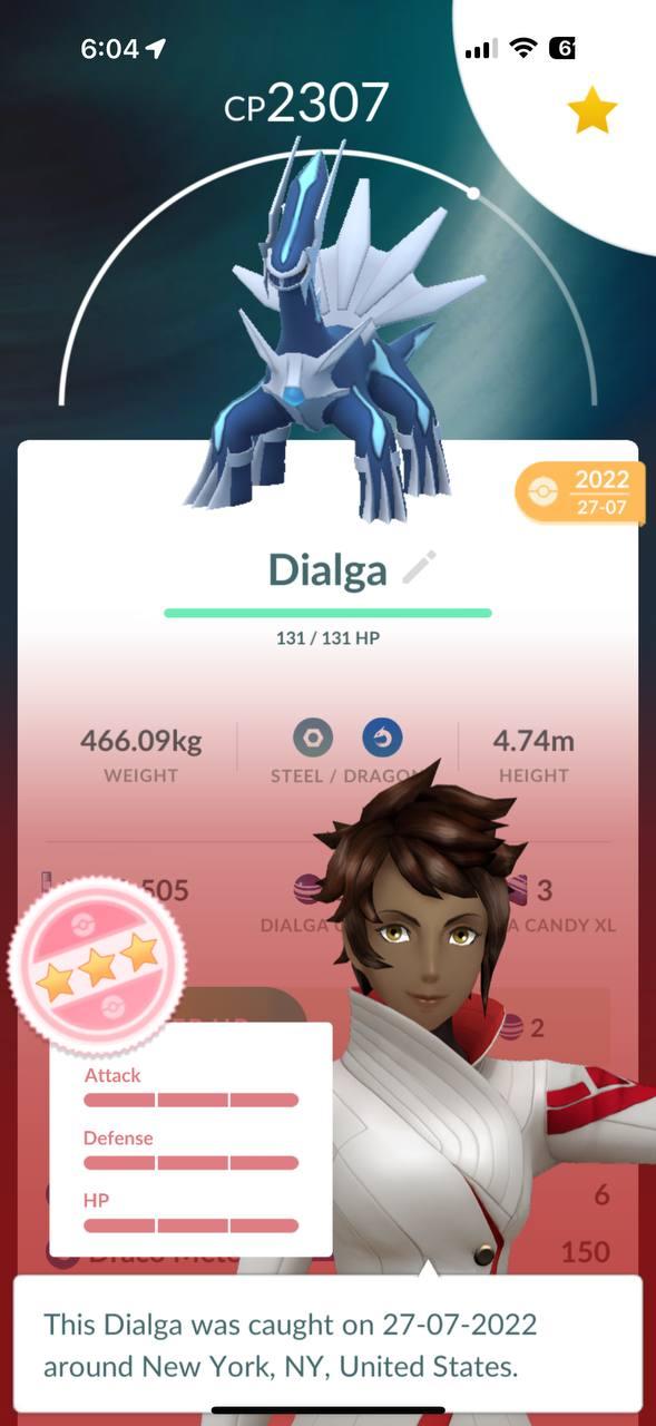466 KG PERFECT DIALGA - 212 HUNDO - LEVEL 38 [] LEGENDARY 201 [] SHINY 47 [] POKEMON 718 [] Team RED - INSTANT - AVAILABLE