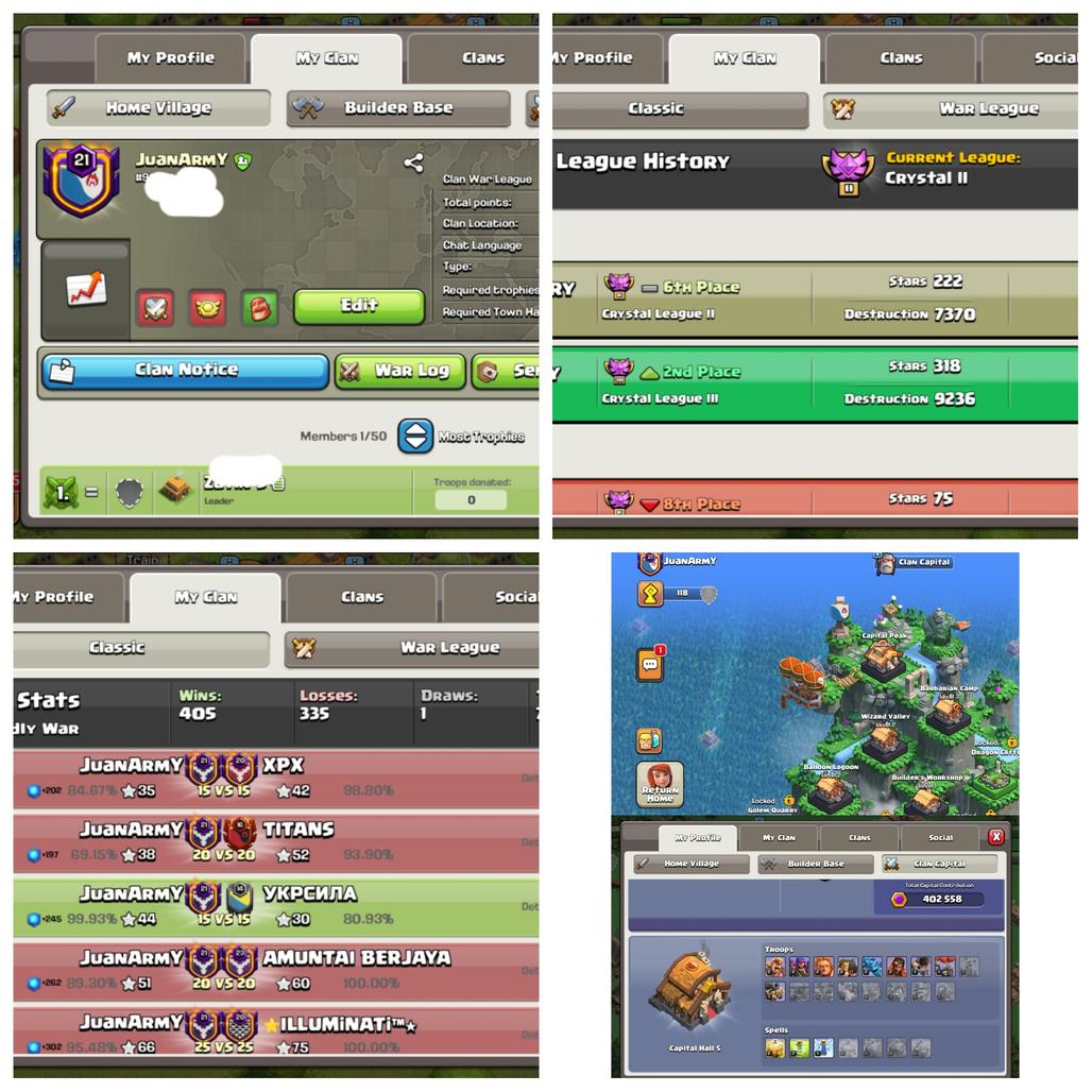 CLAN LEVEL 21 NICK GOOD|JUAN ARMY|CH LVL 6 TROPS GOOD|WIN 405|LOSE 355|CWL CRYSTAL II|FAST DELIVERY