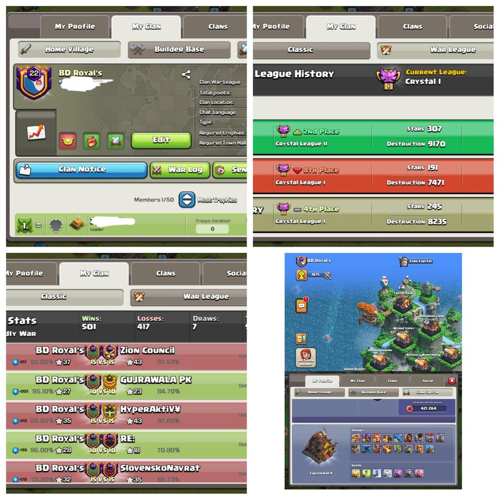 CLAN LEVEL 22 NICK GOOD|BD ROYAL'S|CH LVL 9 TROPS GOOD|WIN 501|LOSE 417|CWL CRYSTAL I|FAST DELIVERY