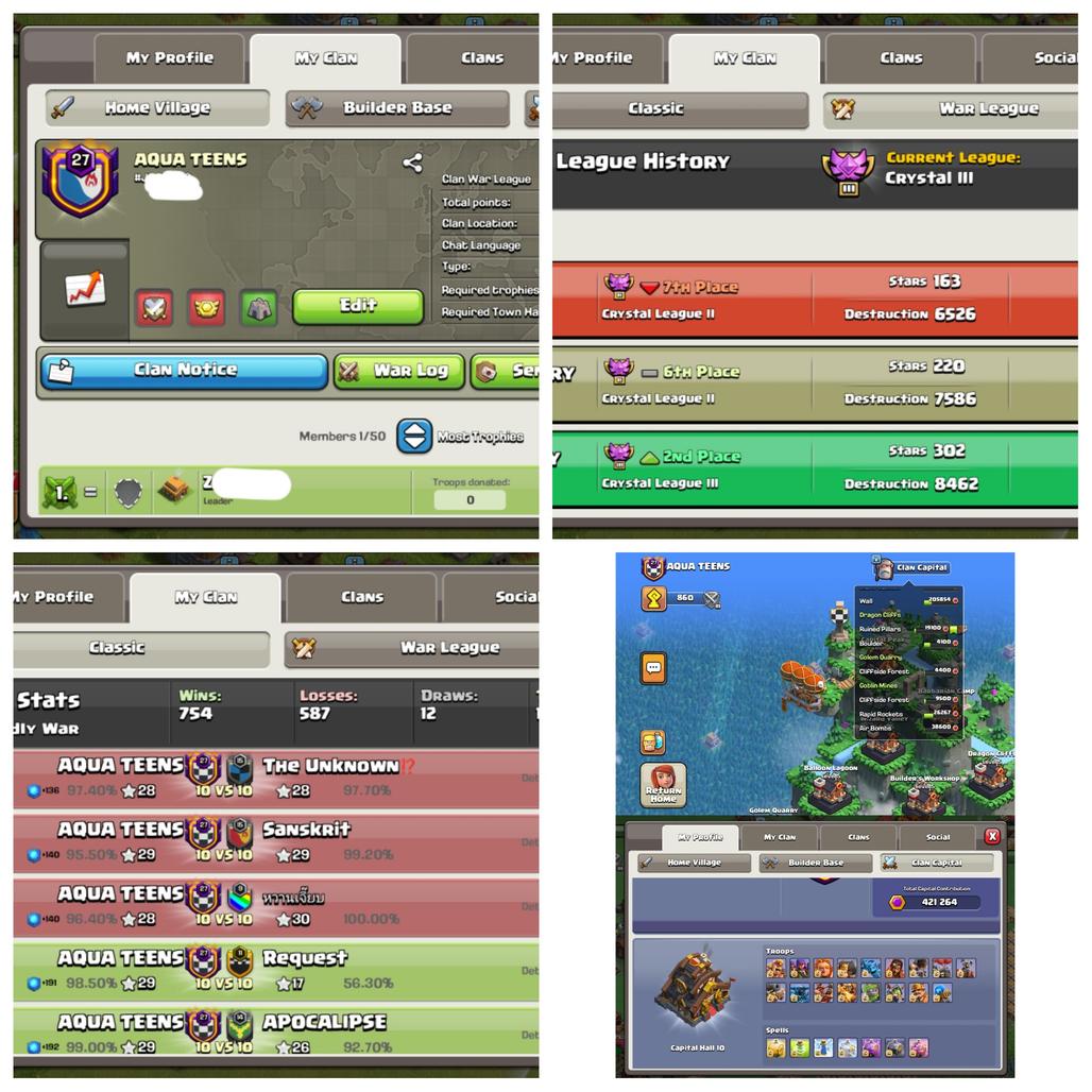 CLAN LEVEL 27 NICK GOOD|AQUA TEENS|CH LVL 10 TROPS MAX|WIN 754|LOSE 587|CWL CRYSTAL III|FAST DELIVERY