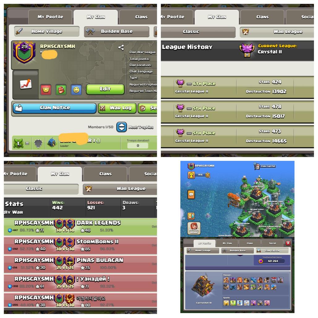CLAN LEVEL 29 NICK GOOD|RPHSCAYSMH|CH LVL 10 TROPS NEAR MAX|WIN 442|LOSE 921|CWL CRYSTAL II|FAST DELIVERY