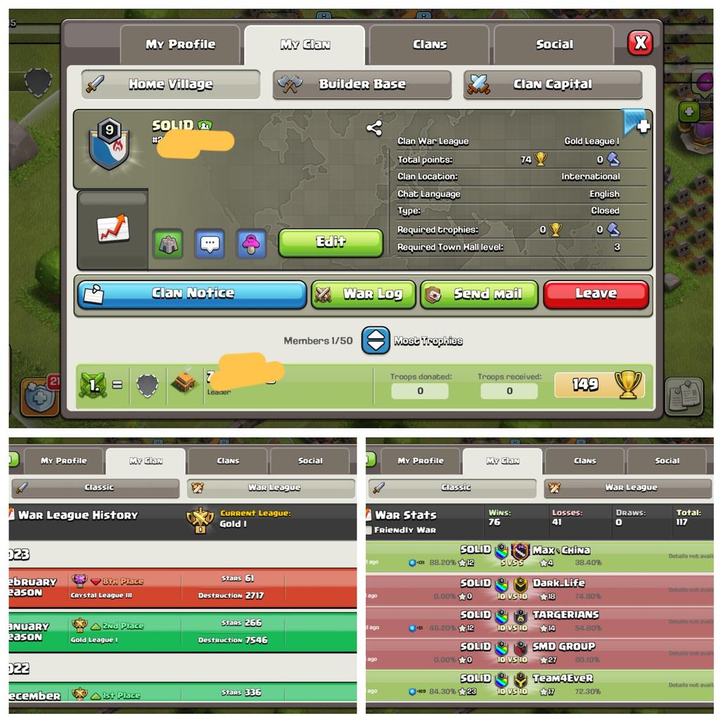 CLAN LEVEL 9 NICK GOOD|SOLID|WIN 76|LOSE 41|CWL GOLD I|FAST DELIVERY