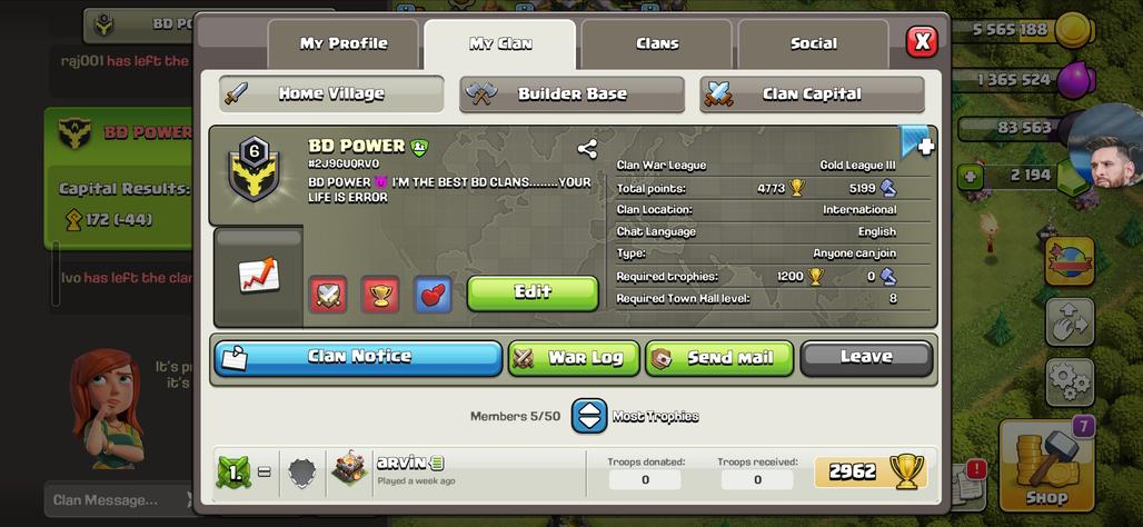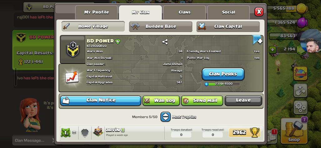 Clan name-BD POWER | Clan level-6 | Capital hall-5 max | Instant Delivery