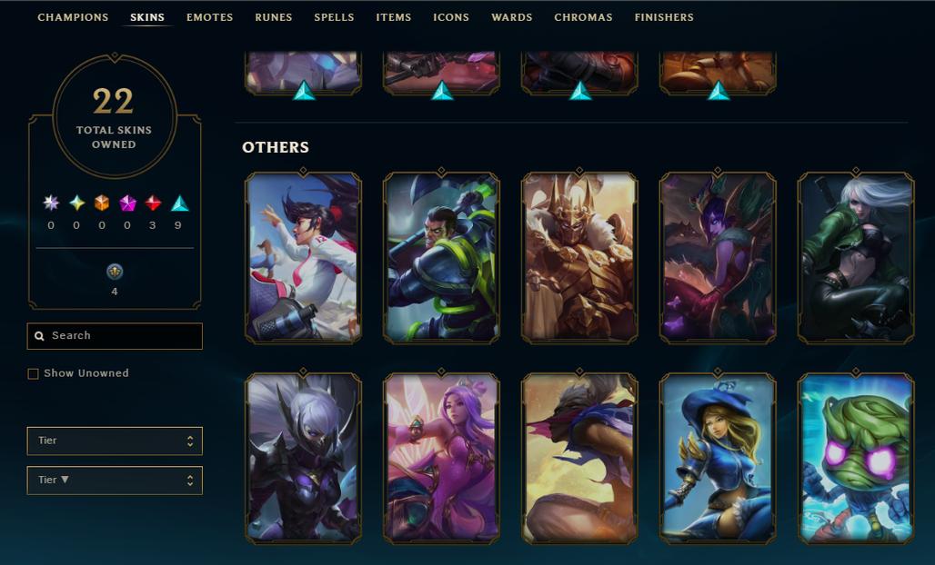 [ EUNE ] - 105 LEVEL - UNRANKED - 22 SKINS [ 14000 BE , 0 RP ] - HONOR LVL 3 -57 CHAMP