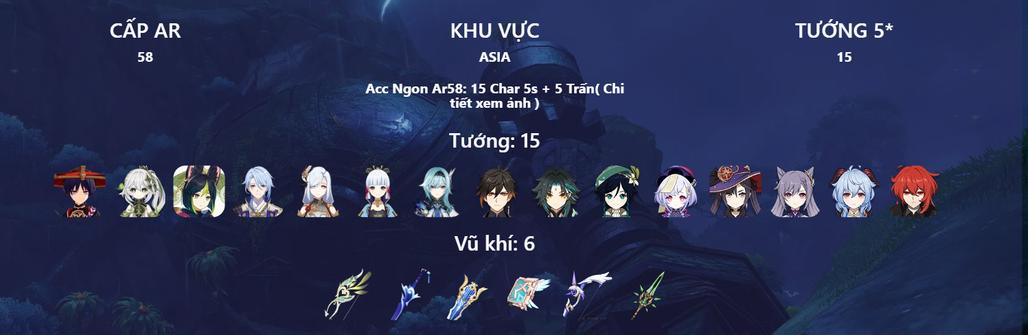 R309-ASIA-AR58-Scaramouche-Nahida-Tighnari-Kamisato-Shenhe-Ayaka-Eula-Zhongli-Xiao-Venti-Qiqi-Mona-Keqing-Ganyu-Diluc-Weapon: 6