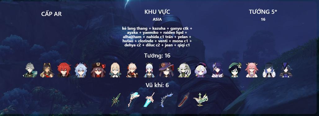 R310-ASIA-AR59-Alhaitham-Dehya-Diluc-Ganyu-Hutao-Jeans-Kazuha-Ayaka-Mona-Nahida-Qiqi-Raiden-Venti-Yae Miko-Yelan-Clorinde-Weapon: 6