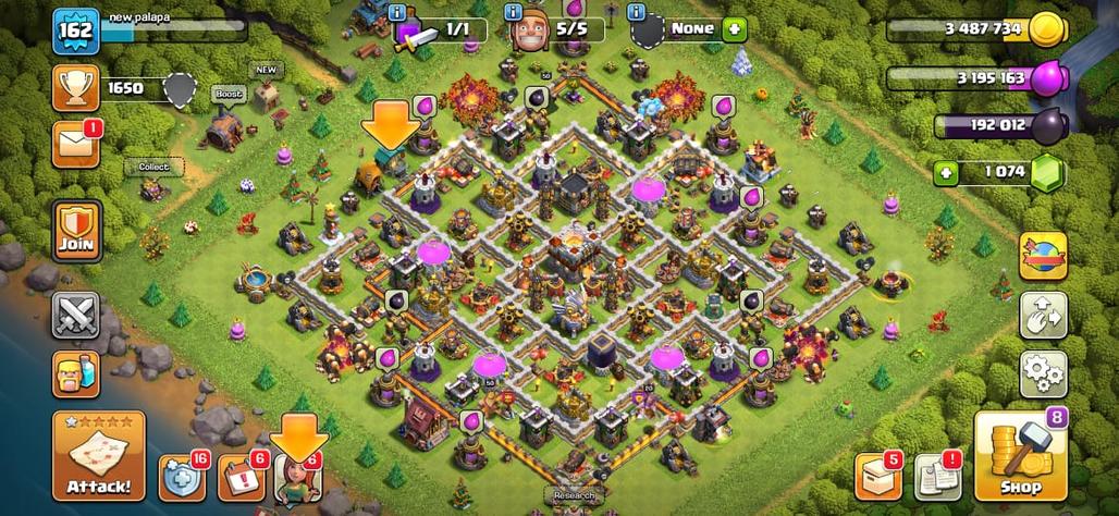 TH 11 | XP 162 | NC 500 GEMS | DEFENSE ALMOST MAX | 50-50-30-20 (HEROES LEVEL MAX) | 1 BOOK MAGIC | WALL LV 11-12