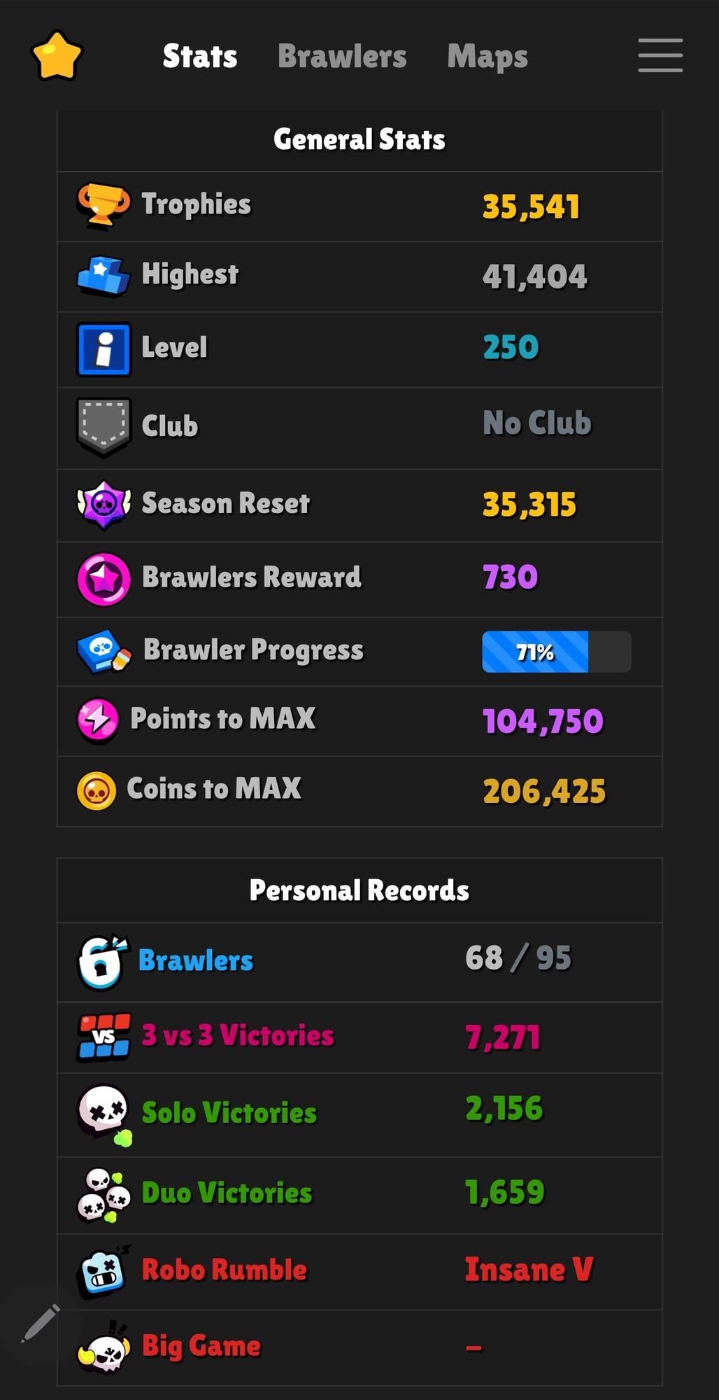 🏆 Trophies: 35541 🎚️ Level: 250